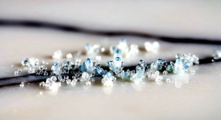 This image captures light blue crystals scattered across a soft background, evoking a sense of tranquility and calm. Perfect for wellness or nature themes.