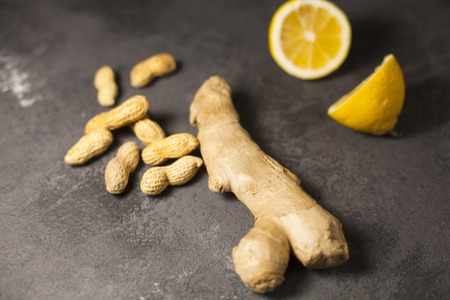 Ginger root, lemon and peanuts