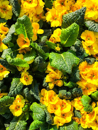 Background, texture, postcard from colorful flowers primrose garden. Studio Photo