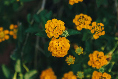 Beautiful yellow flowers blooms in the garden. Close up. Soft focus.