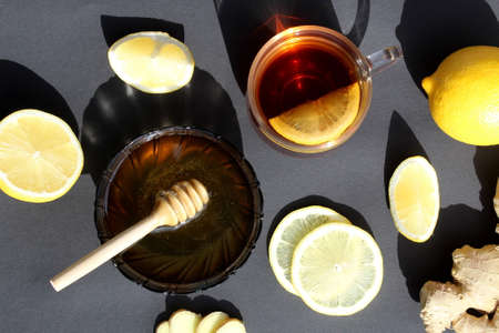 Traditional medicine for the treatment of colds. Ginger, lemon and honey.