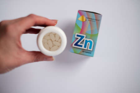 Tallinn, Estonia - 02.08.2022: Zinc tablets by Tervisepüramiid (Health Pyramid). Zinc is essential mineral for body, considered also „beauty mineral“. Food supplement.