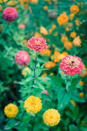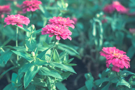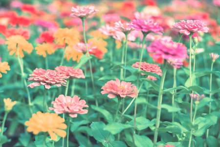 Colorful zinnia flowers in the garden with filter effect retro vintage style