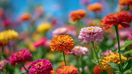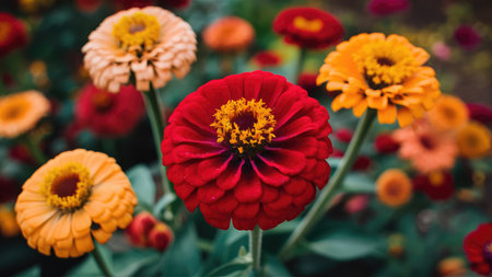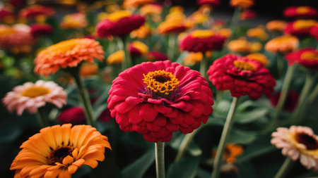 Vibrant Zinnias in Bloom A Stunning High-Resolution Image of Colorful Summer Garden Flowers