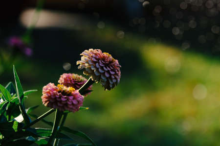 Beautiful garden farm zinnia flowers close up to pick in summer