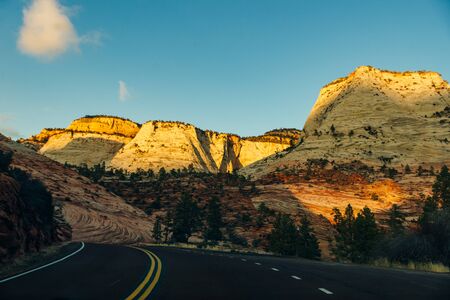 Zion National Park. Beautiful unspiring natural landscapes. Peak in Zion Park at sunset.