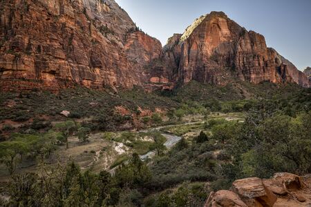 Sunset over the river in Zion National Park, Utah, USA
