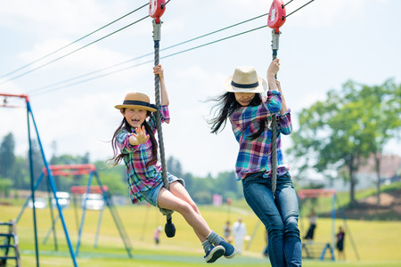 Apr 23, 2017 Woman sliding on a zip line adventure at Mountain lake resort in Laguna, Philippines