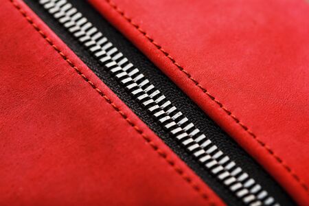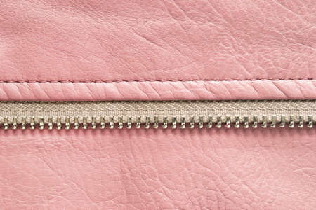 Zipper on pink leather background closeup