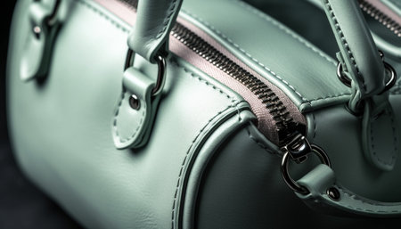 Close up of zip fastener on black women's handbag