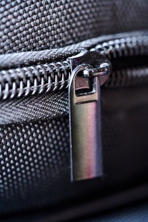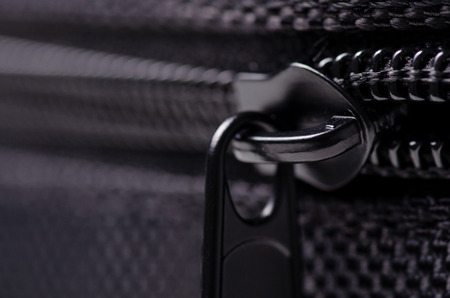 Closeup on a zipper of a black plastic suitcase