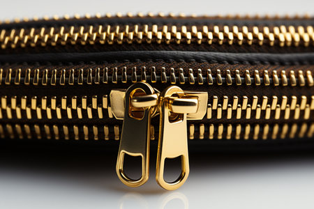 Brass Zippers. A high quality image created with Generative Ai