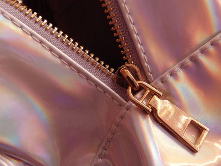 Zipper on a holographic bag, close up