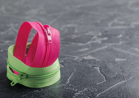 zipper pink and green on the table