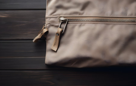 Close up backpack fabric zipper pull with smooth copy space side view travel gear detail outdoor adventure accessory minimal design advertising background