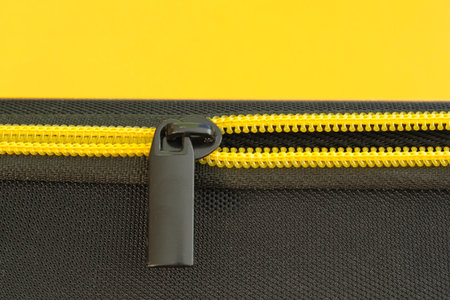 Yellow zipper close-up. Detail of a suitcase.