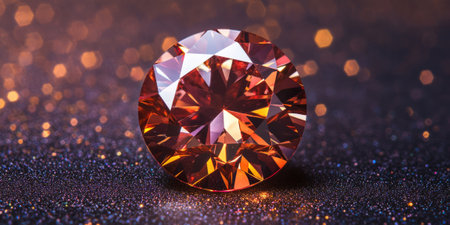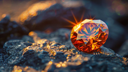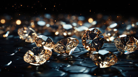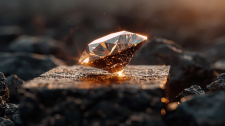 Stunning diamond sparkles brilliantly against textured dark background, reflecting warm light and creating captivating visual effect. intricate facets of gem enhance its allure, making it symbol