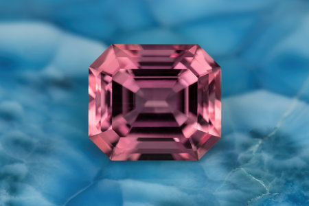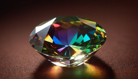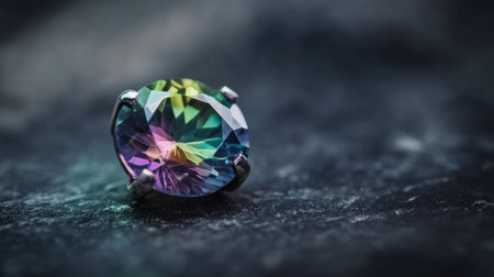 A stunning view of a single gemstone reflects vibrant colors on a textured surface, creating beautiful shadows that enhance the elegance and allure of the scene.