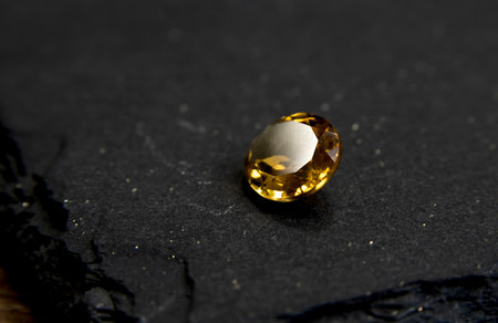 This stunning yellow oval gemstone displays intricate facets that reflect light beautifully against a black background, embodying elegance and luxury.