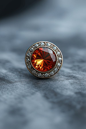 A stunning round diamond rests elegantly on a rich fabric background, highlighting its brilliance and captivating light reflections, creating a warm and inviting atmosphere.
