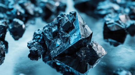 Rare Earth Metal Crystals. Close-up of rare earth metal crystals with a metallic luster on a dark background.