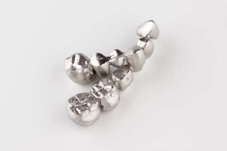 Shiny silver metal, essential chemical element in industry and jewelry.