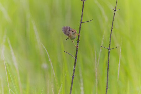 Zitting Cisticola is a small, active songbird commonly found in grasslands, wetlands, and open fields.