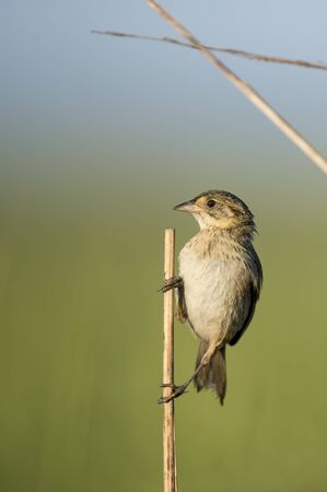 Grasshopper Warbler (Locustella naevia) perched on a reed