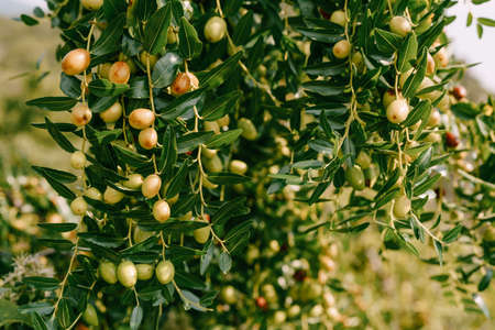 Green jujube fruit on the jujube tree in the garden, Ida Mountain, Edremit, TURKEY