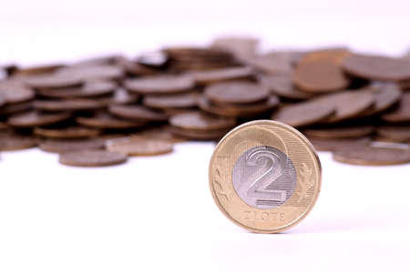 Polish zloty coins, close up