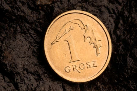 Polish money, the dime has a dark background