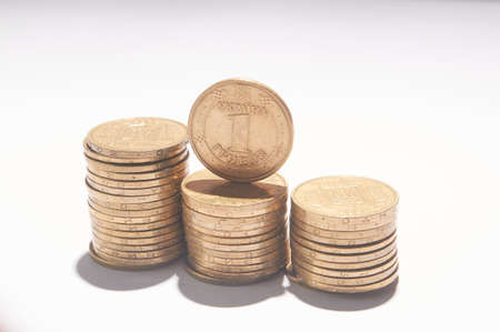 Ukrainian coin stacks on a light background