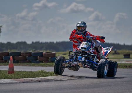 05-08-2020 Riga, Latvia: Unidentified quadrocycle rider training at racing track.