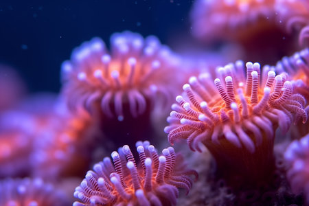 AI Generated. Vibrant coral polyps underwater reef closeup