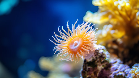 Beauty of an underwater anemone with this vibrant close-up photo. Perfect for adding an exotic touch to your visuals. Generative AI