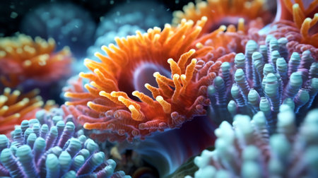 AI Generated. Vibrant coral polyps underwater reef closeup