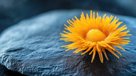 A stunning overhead view of vibrant yellow sea life thriving on a dark rock surface, showcasing unique patterns and intricate details of underwater organisms.