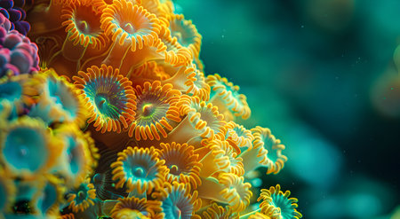 Vibrant Coral Polyps, Marine Life, Colorful Underwater Scene. Ocean Ecosystem, Biodiversity