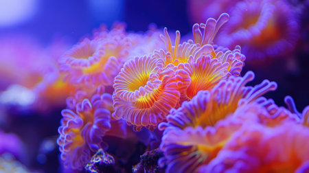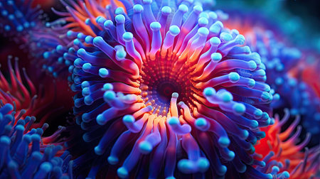 AI Generated. Vibrant coral polyps underwater reef closeup