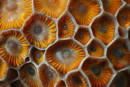 Coral reef ecosystem, underwater beauty. Close-up of coral reef polyp textures.