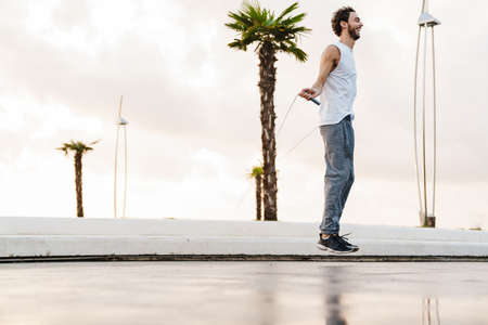 Belarus, Gomel, May 01, 2017.Jumping with a rope.Man on the rope.Ropejumping.