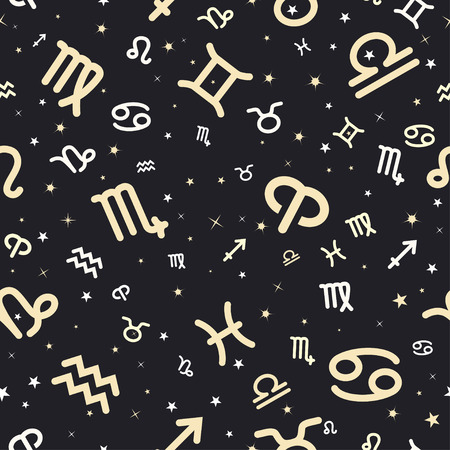 Zodiac signs seamless pattern. Horoscope symbols. Astrology background