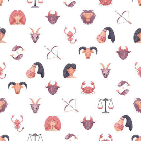 Vector eamless pattern with Zodiac signs. Astrology horoscope icons of esoteric. Vector illustration