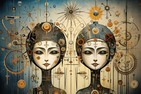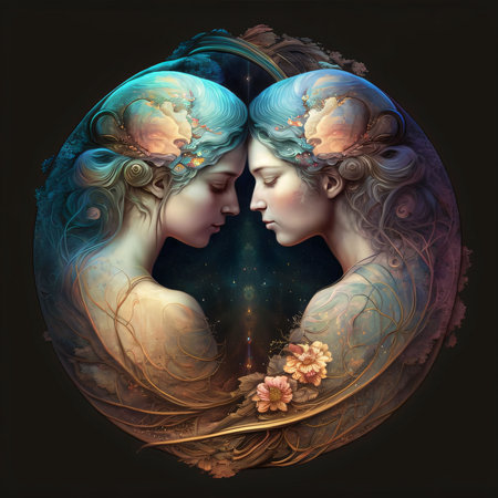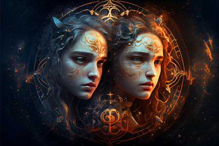 Gemini horoscope sign, twins zodiac art concept, wallpaper background illustration, Generated by AI