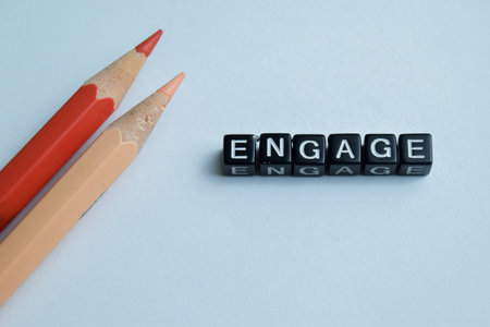 Concept of Engage written on wooden blocks. Cross processed image on Wooden Background
