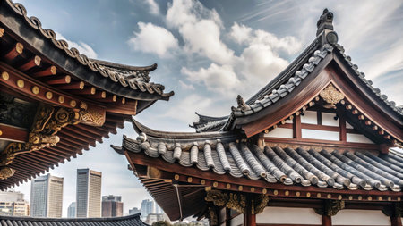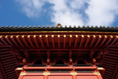 pagoda roof viewed from below against the sky, created with generative ai