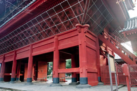 Tokyo, Bunkyo Ward - August 6, 2018 : Roof detail of Honden (Main Hall) at Nezu Jinja Shinto Shrine. Ishi-no-ma-zukuri style of Shinto architecture. Important Cultural Property