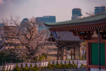 Cherry blossoms and japanese temple in Tokyo, Japan