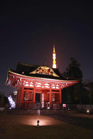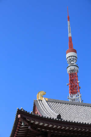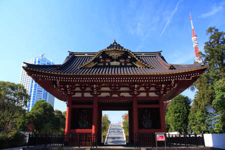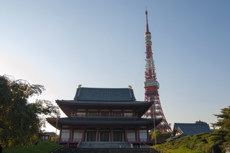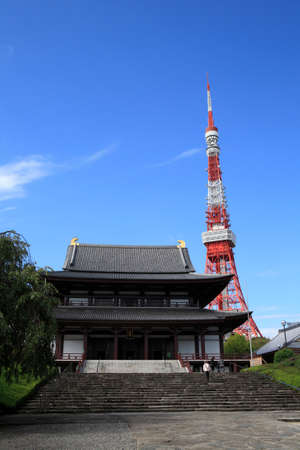 Zojoji Temple and Tokyo tower in Tokyo, Japan