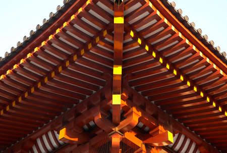 Detail of the roof of Asakusa Temple in Tokyo, Japan during dusk on a fall day.